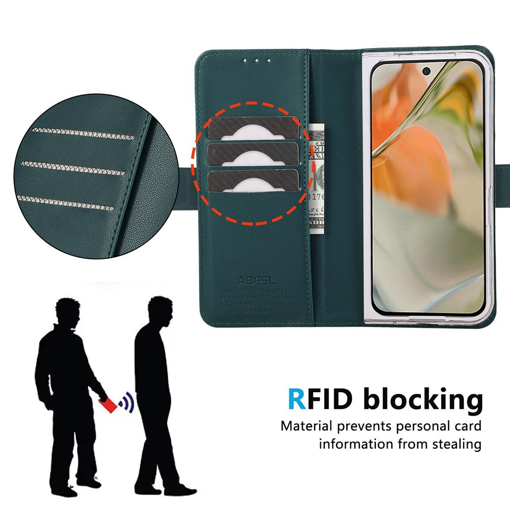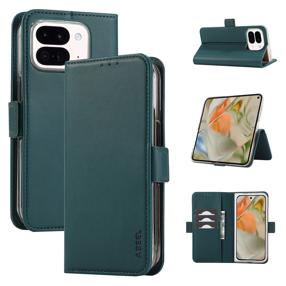ABEEL Style A02 For Google Pixel 9 Pro Fold 5G Stand Case PC+PU Leather RFID Blocking Wallet Phone Cover